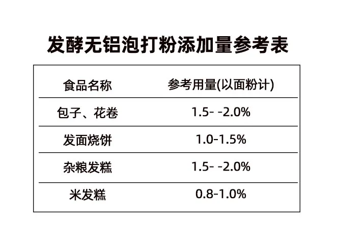 二)发酵无铝泡打粉添加量参考表