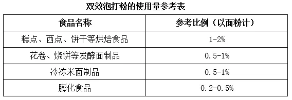 另外,每当更换新的双效泡打粉使用前建议先做一下应用实验,确定合适的添加量,然后再正式投入使用。